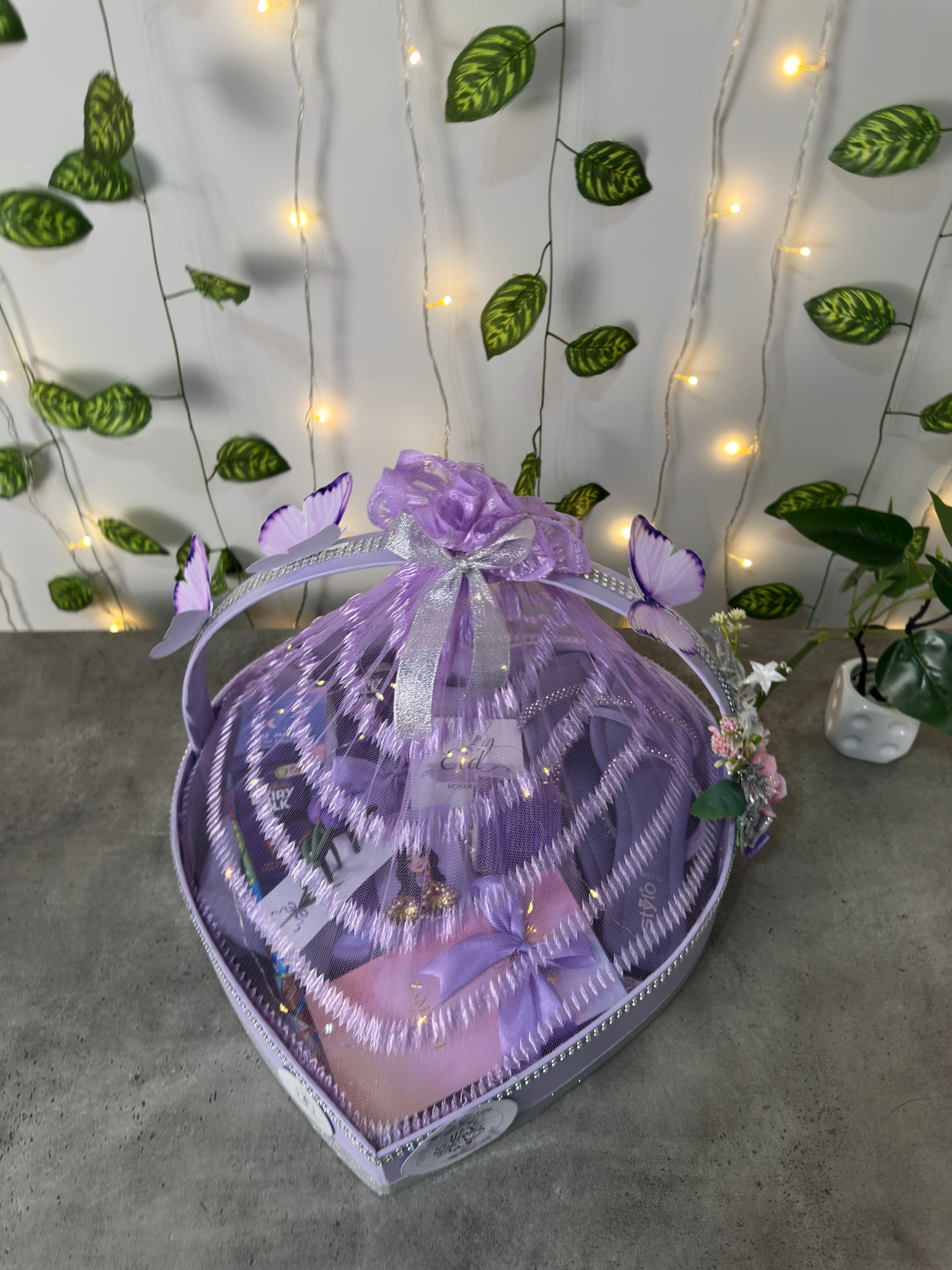 A premium purple-themed basket curated for her — accessories, beauty essentials and Eid touches.